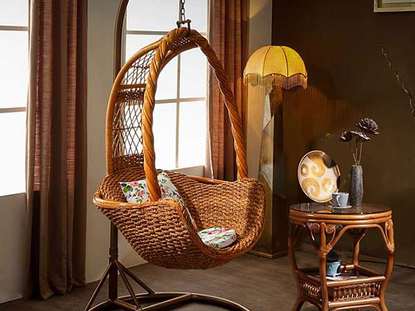 1、看清吊椅的材質,若是藤制吊椅,藤器除手工編制技藝精細、造型新穎美觀外,最主要的是審視藤器材質是否優良。如藤材表面起皺紋,說明該家具是用幼嫩的藤加工而成,韌性差、強度低,容易折斷和腐蝕。藤藝家具用材講究,除用云南的藤以外,好多藤材來自印尼、馬來西亞等東南亞國家,這些藤質地堅硬,首尾粗細一致。