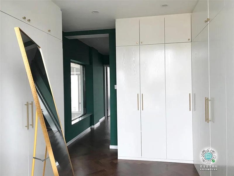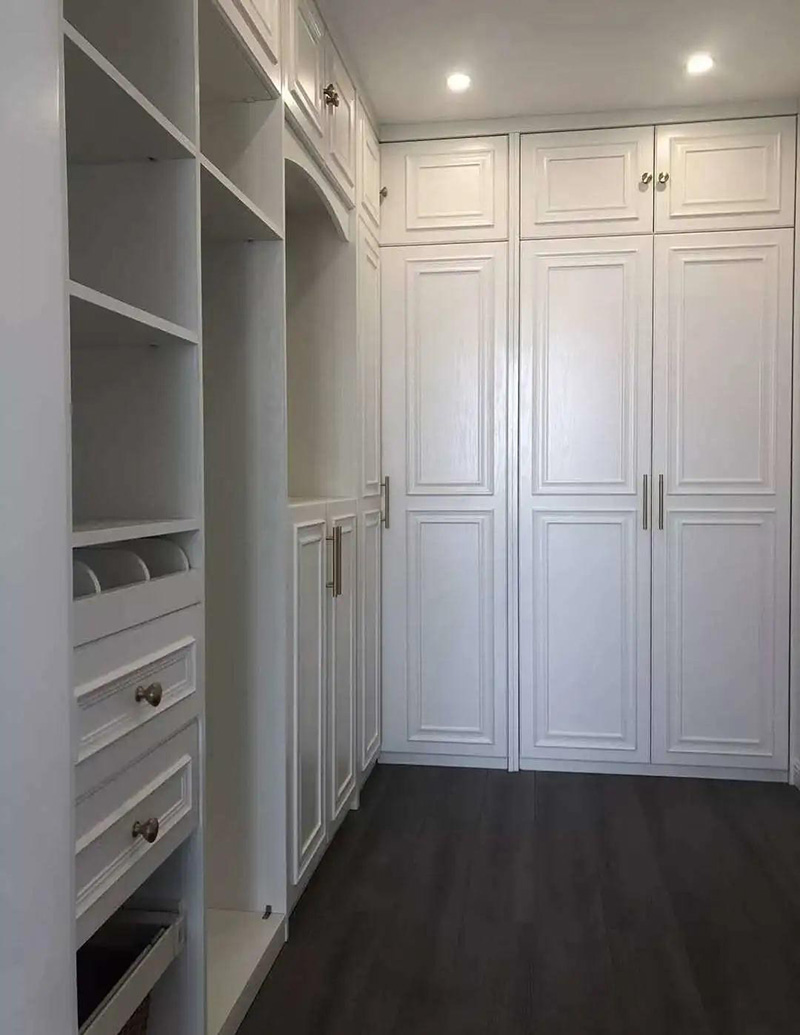 過道需要最少預留860mm~910mm。如果寬度不夠,建議壓縮衣櫃的進深,保證過道有足夠的活動空間,不然就像個小倉庫那樣進去手腳都伸不開,試衣服也難。