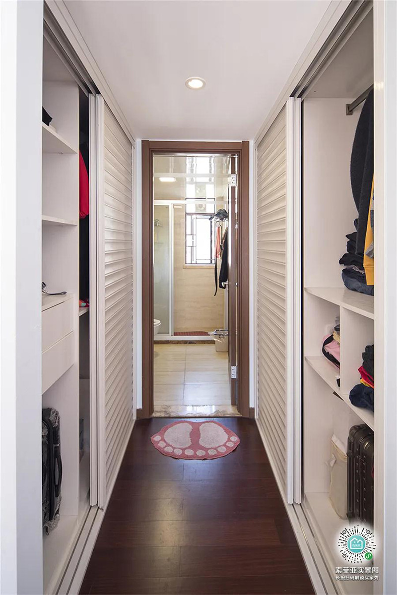 沒有足夠的走道空間,那么直接將主衛改成衣帽間也未嘗不可。