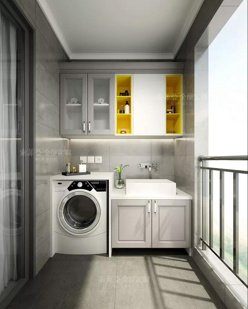 量身客製化的陽臺,不僅洗衣機有了容身之處,還能一並解決部分收納難題。