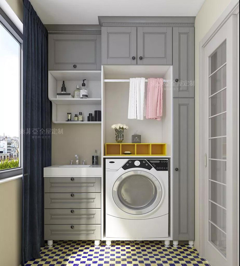 ※不管洗衣機是放陽臺還是浴室還是廚房,都要提前考慮排水系統(地漏、下水管),在裝潢前做好水路改造。