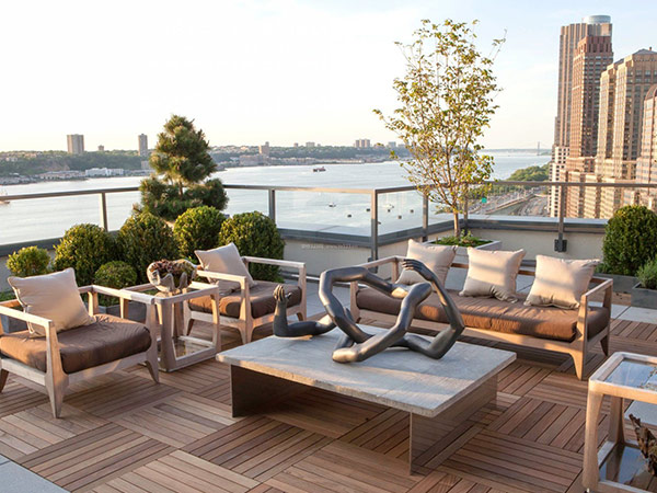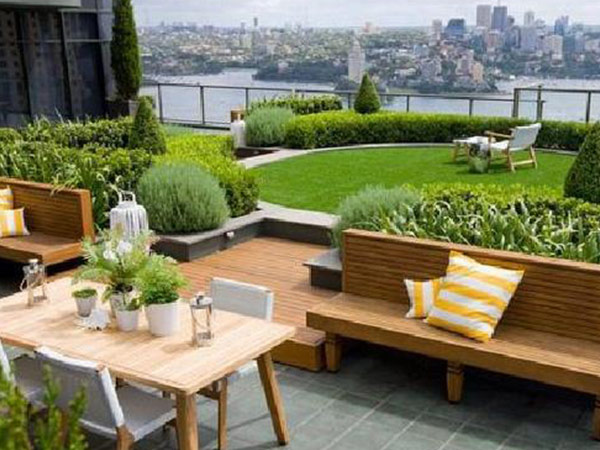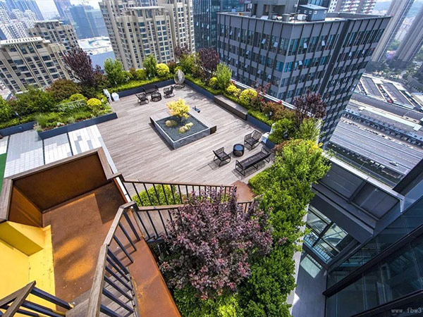 密集型屋頂綠化可以說是真正意義上的屋頂花園,通常可以加入樹、草、亭子、水池、假山和木椅等各種園林設計元素,為人們提供了休閑和運動的空間,但也需要經常的維護和保養。