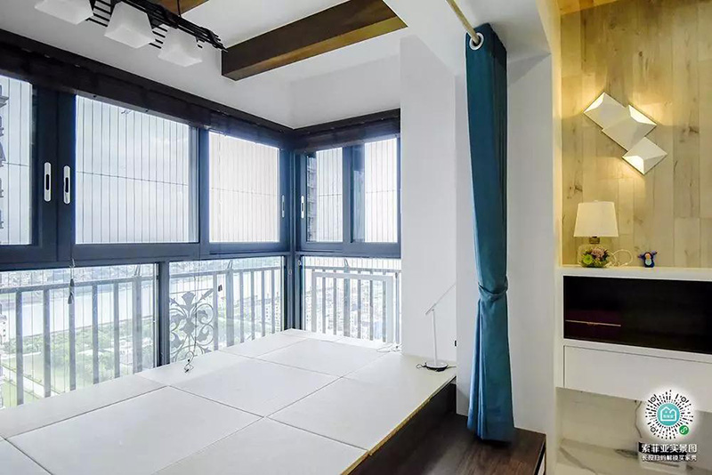 房間的陽臺也可以打造榻榻米地臺,供休閑玩樂,又可擴容儲物,比飄窗好用十倍!