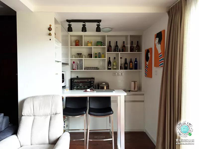 最實用的設計就是打造吊櫃+陽臺櫃組合,吊櫃用來儲物,裝上櫃門,保證美觀整潔。