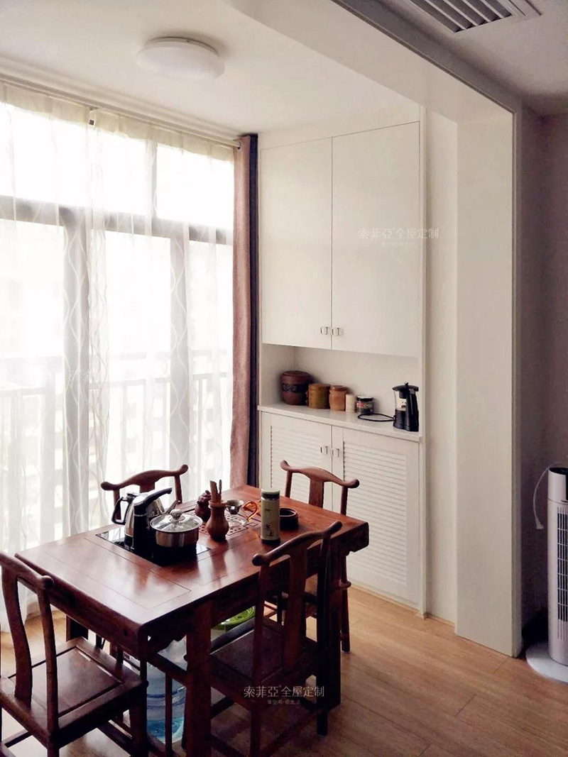 家里陽臺比較大的,將陽臺打造成茶室,無事可以泡壺功夫茶,約三五好友暢聊度日。