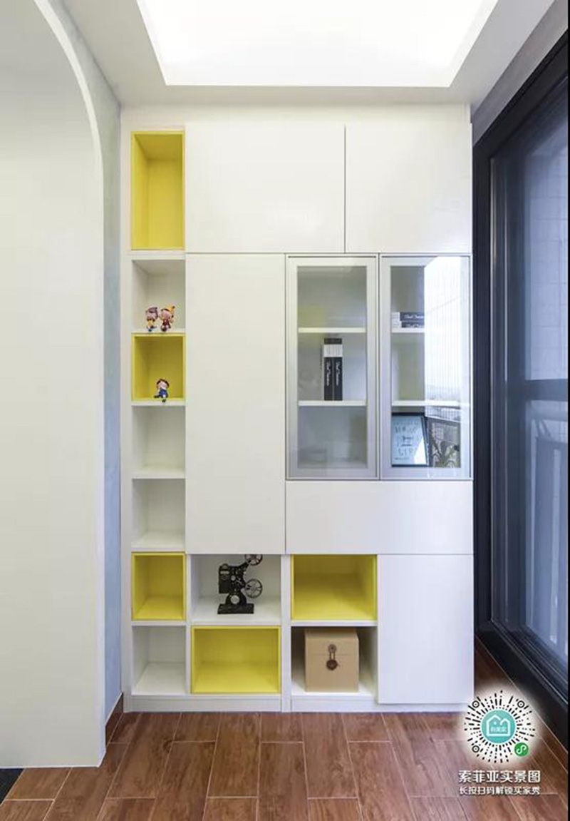 另一邊則可以打造一個展示和收納一體的書櫃,形成一個小型閱讀區。