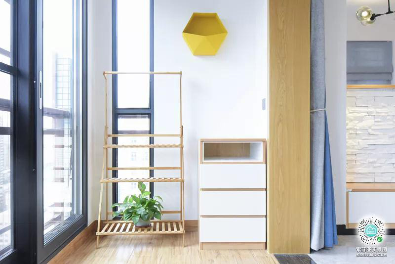 3.借助落地式折疊晾衣架需要晾曬的時候拿出來,用完收回邊上的櫃子里,完全不耽誤陽臺其他功能。