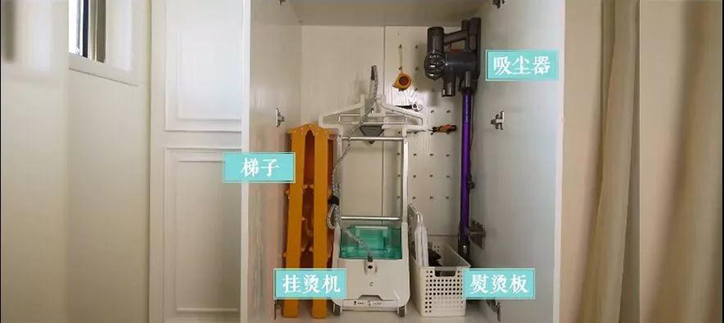 陽臺的一邊做洗衣區的話,另一邊就可以做成儲物區,用來收納清潔用具。