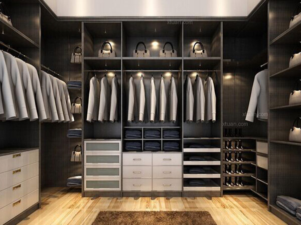 衣帽間照明效果對整個使用會有很大的影響,所以設計的燈光不僅要保證照明度,還要保證燈泡質量,以免燈泡因發熱而自爆,出現安全事故。