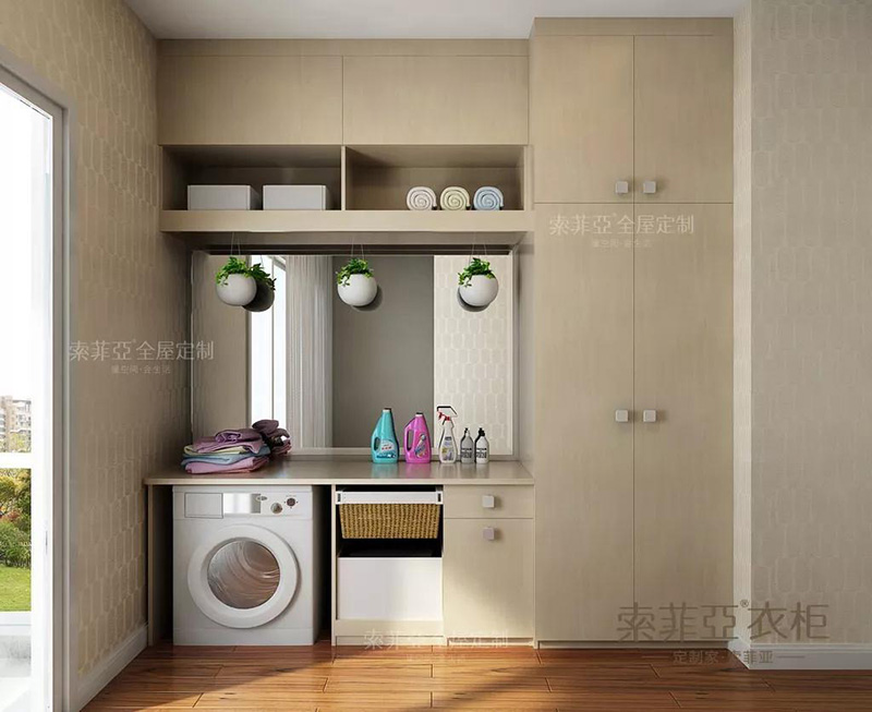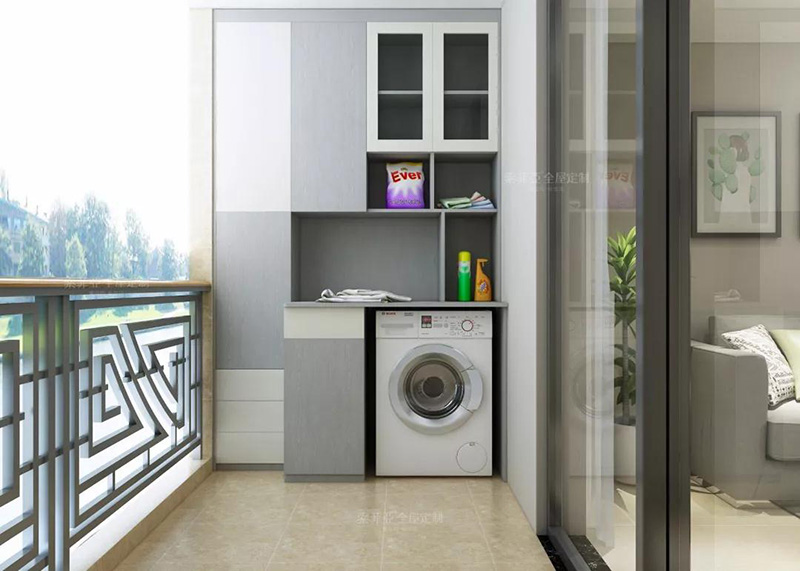 打造一個家務洗衣區,做好科學的規劃,做到方便拿取,合理收納。下面表姐給大伙介紹幾種受歡迎的陽臺櫃設計: