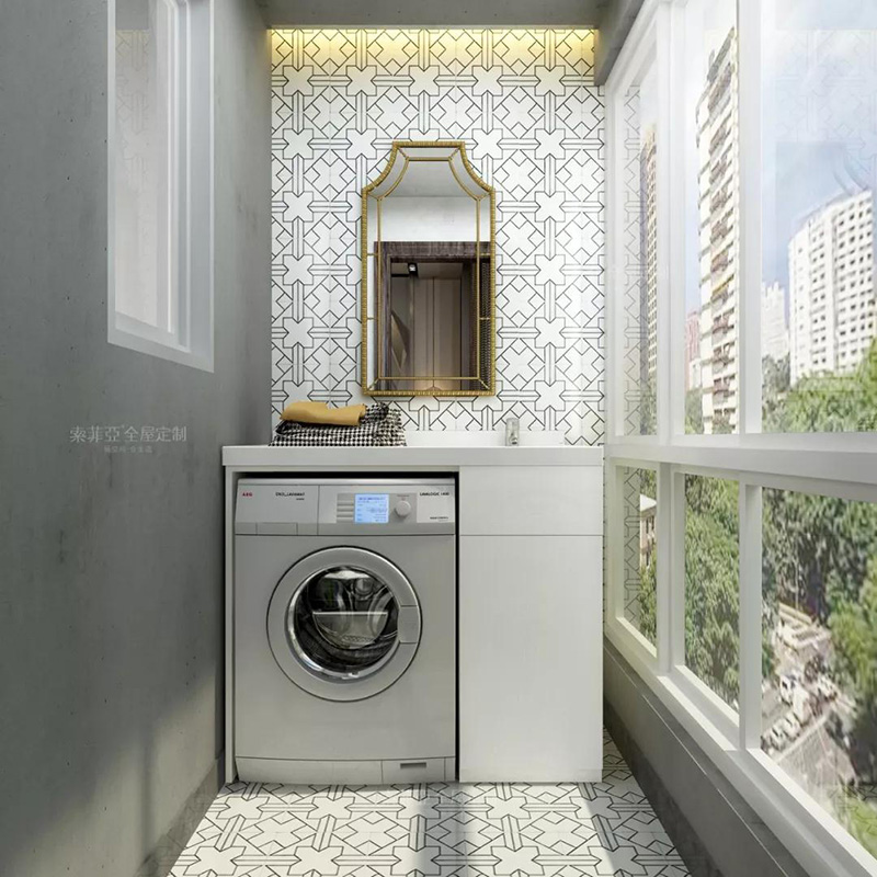 這種空間比較寬敞,則可以打造成洗衣機+洗手臺,這樣一來衣物的洗滌晾曬,以及日常洗漱都可以在陽臺完成了。