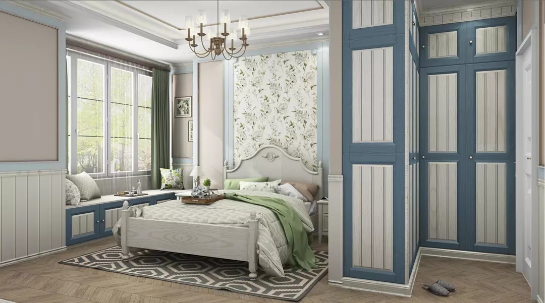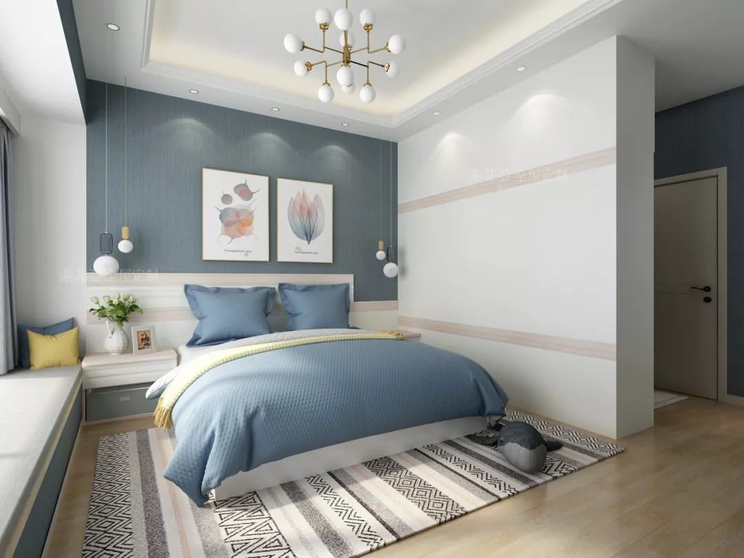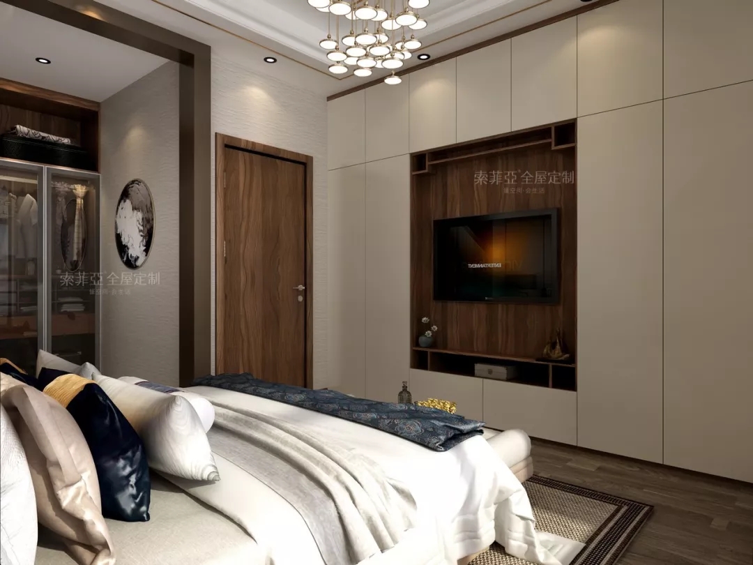 把衣櫃做到頂,將臥室“一分為二”,另一面靠墻,隔開睡眠區,不僅實用,也使臥室更具隱私性。