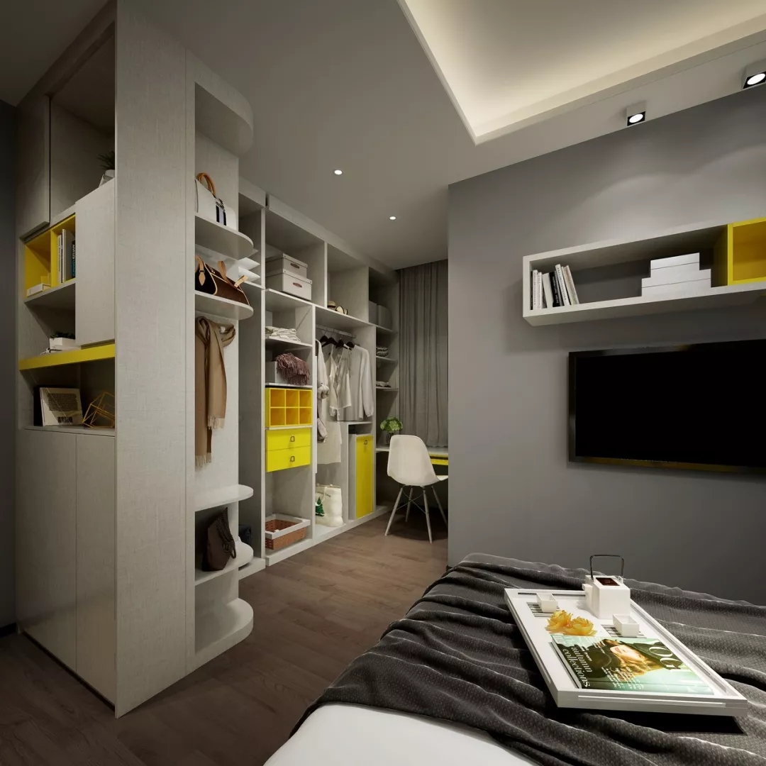 也許你們會吐槽,臥室沒有那么大呀,怎麼辦呢?那就找一個轉角下手吧,你可以說它只是帶有衣帽間功能的衣櫃,但實用性不容小覷。