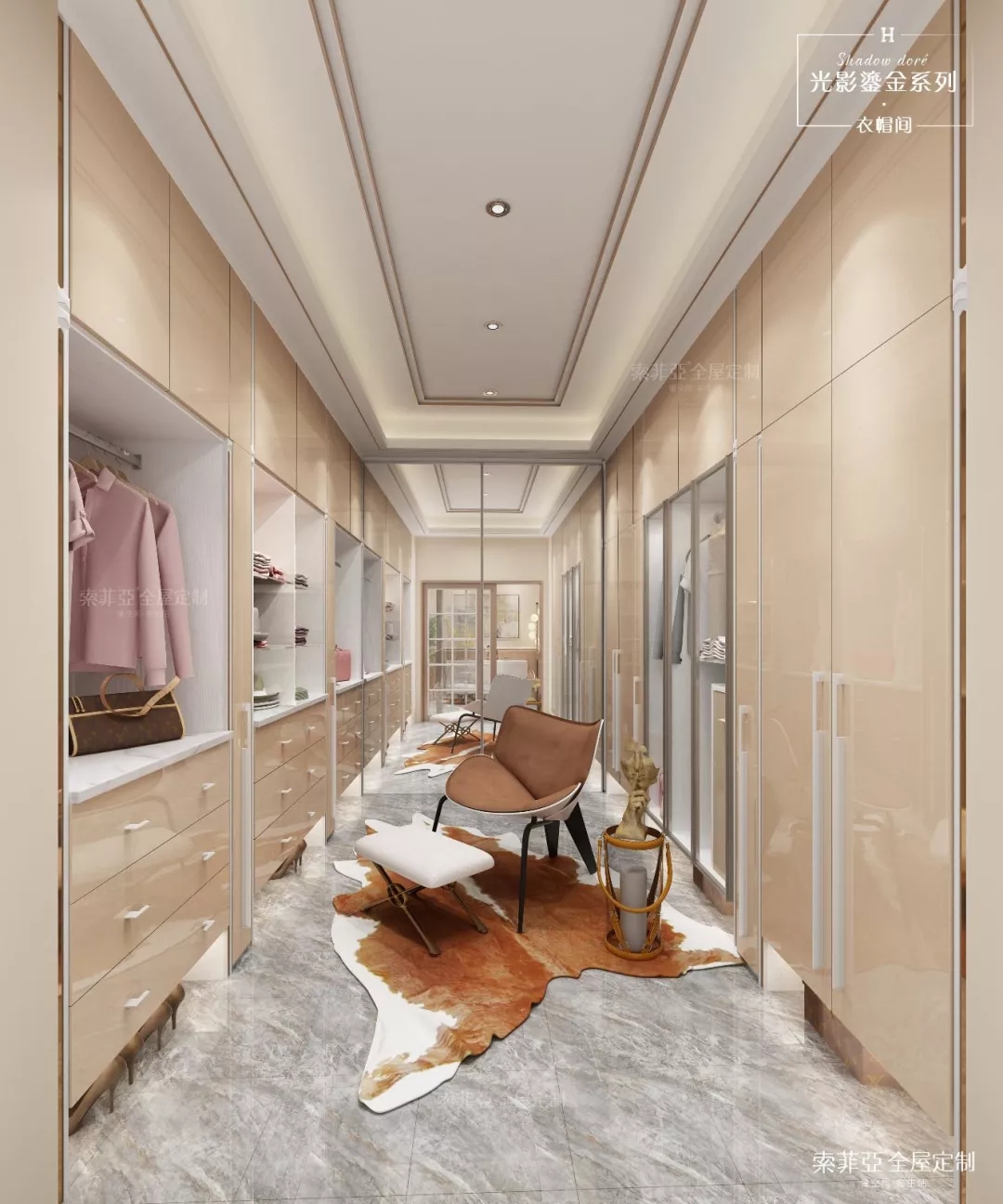 獨立的步入式衣帽間,隱秘性極好,在臥室做這類衣帽間得充分考慮面積是否允許,找專業設計師設計規劃。