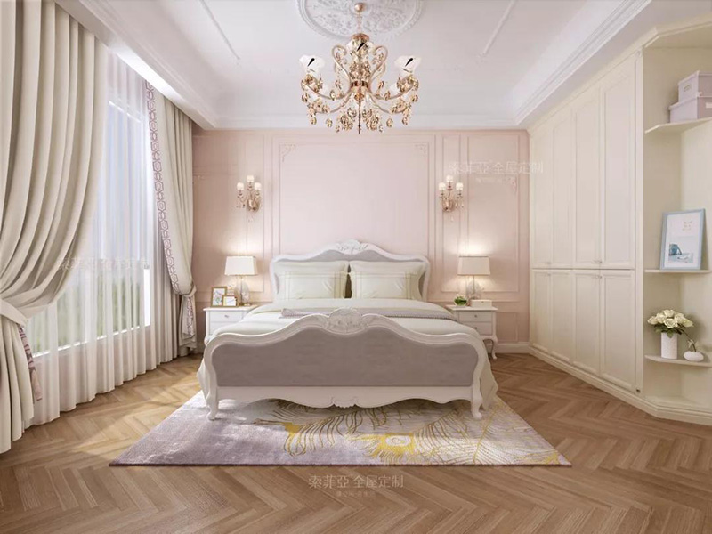 臥室融入歐式的異域風情,以簡約、優雅的設計手法打造雅致新古典,滿足追求精致生活的需求。