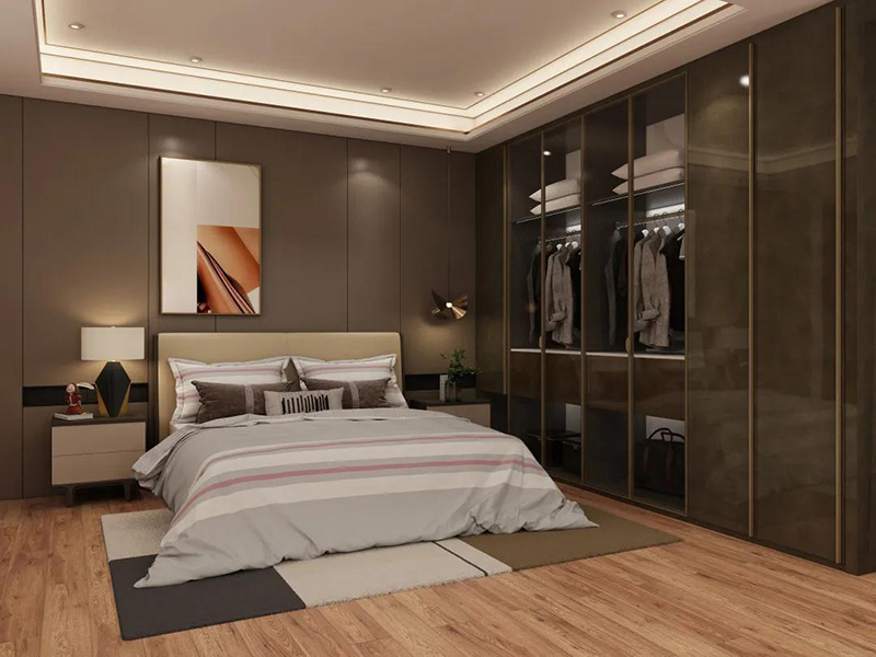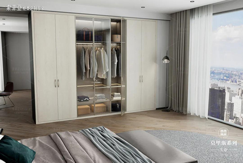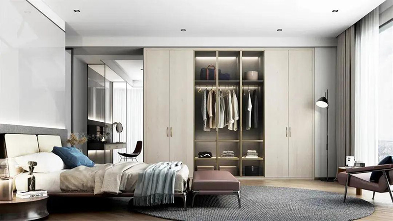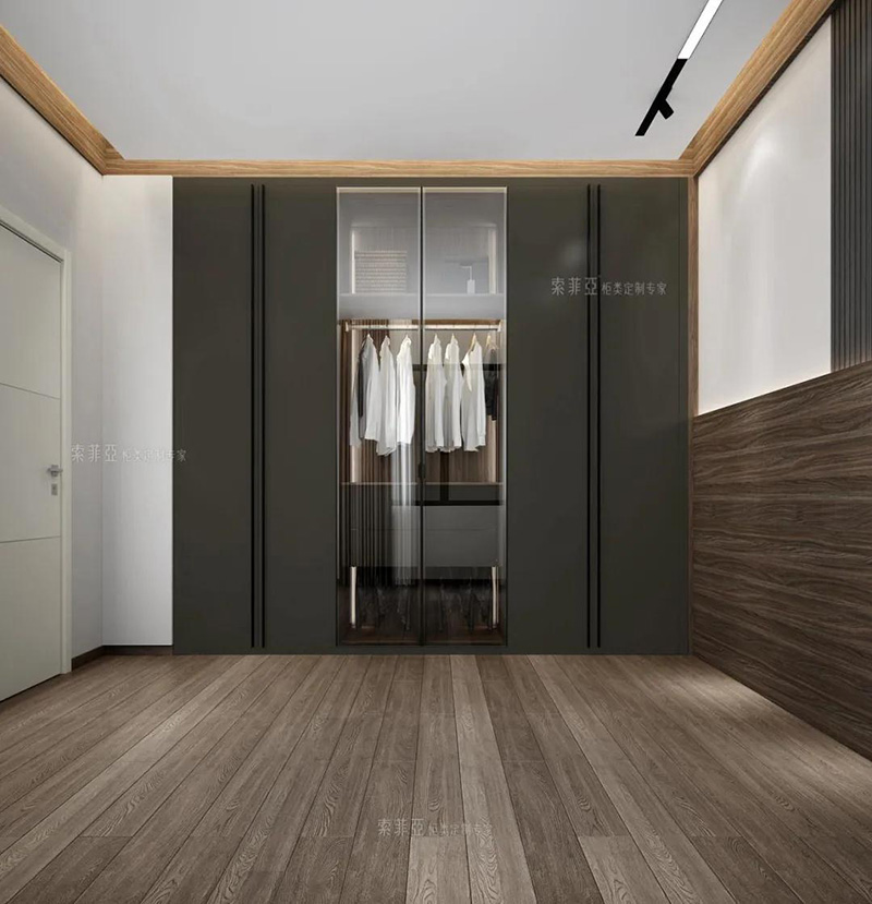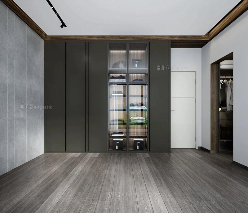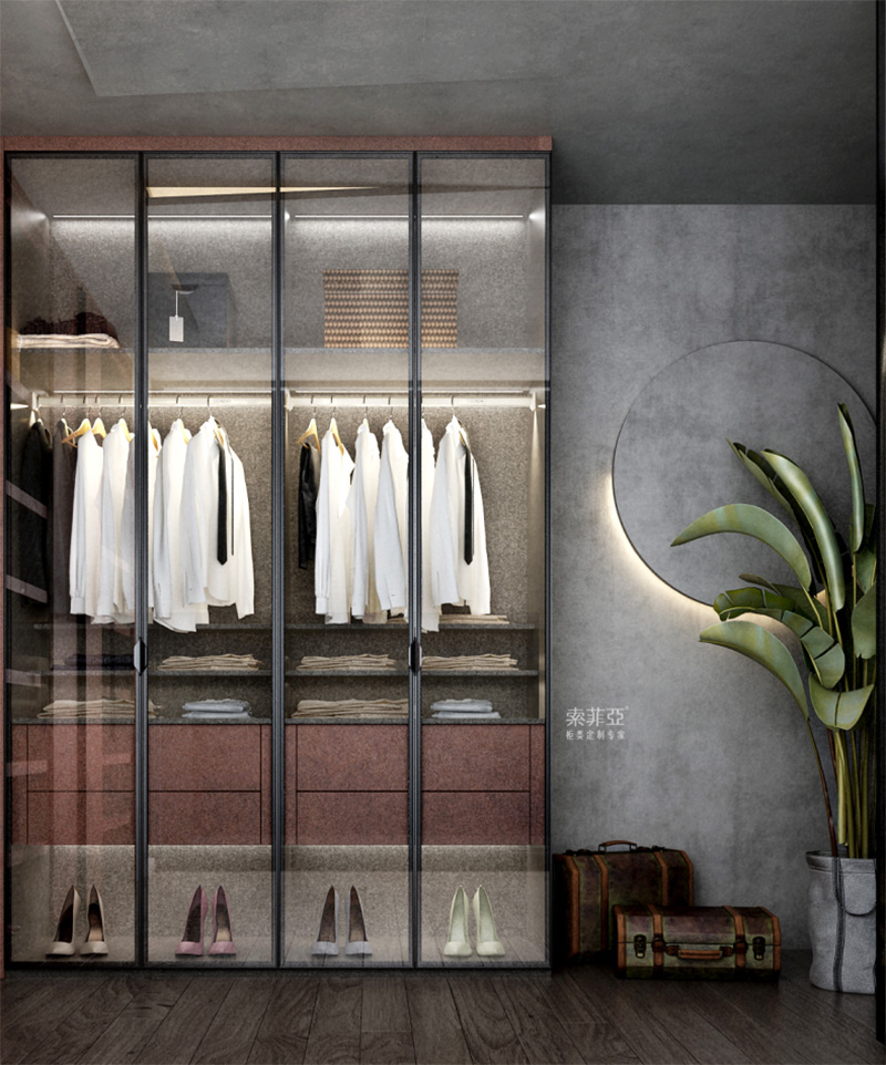 ▼設計亮點:衣櫃中部玻璃門板通透自然,設計感十足。