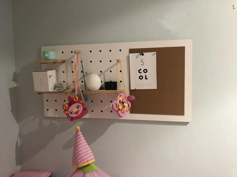 簡單實用的擱板和洞洞板,就能將收納和展示功能盡數承擔下來。