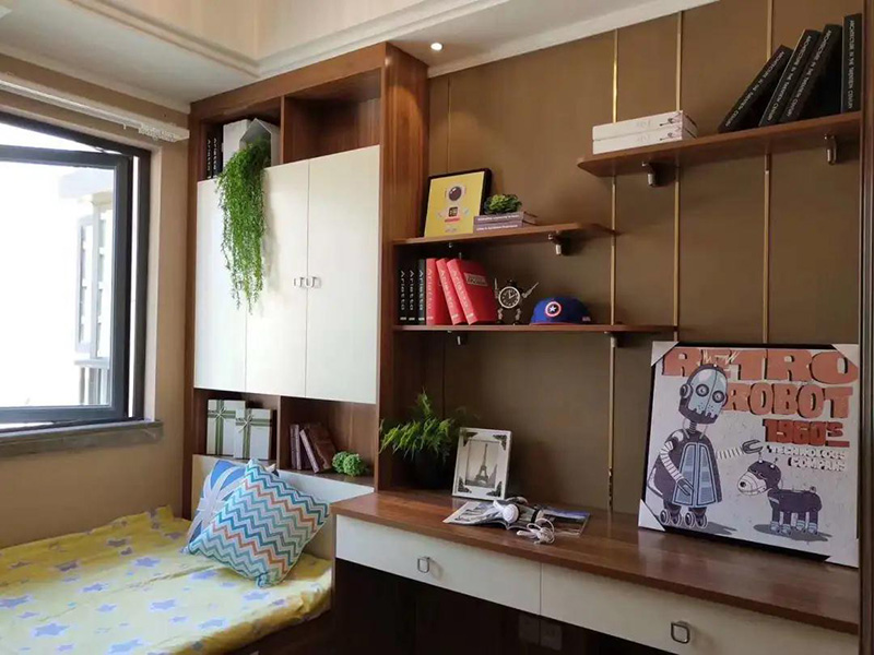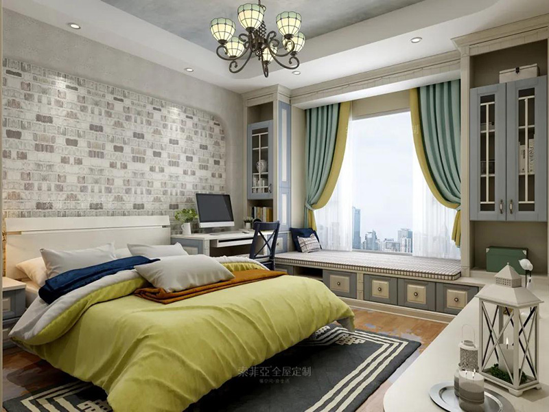 當然了,假如臥室恰好有飄窗,那么利用起來就更方便了。搭配立櫃和飄窗櫃化身收納寶地。