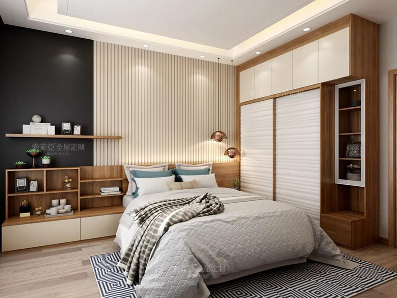 假如想要追求極致的空間利用率,甚至直接客製化整墻式床頭櫃,打造獨特的床頭收納背景墻。