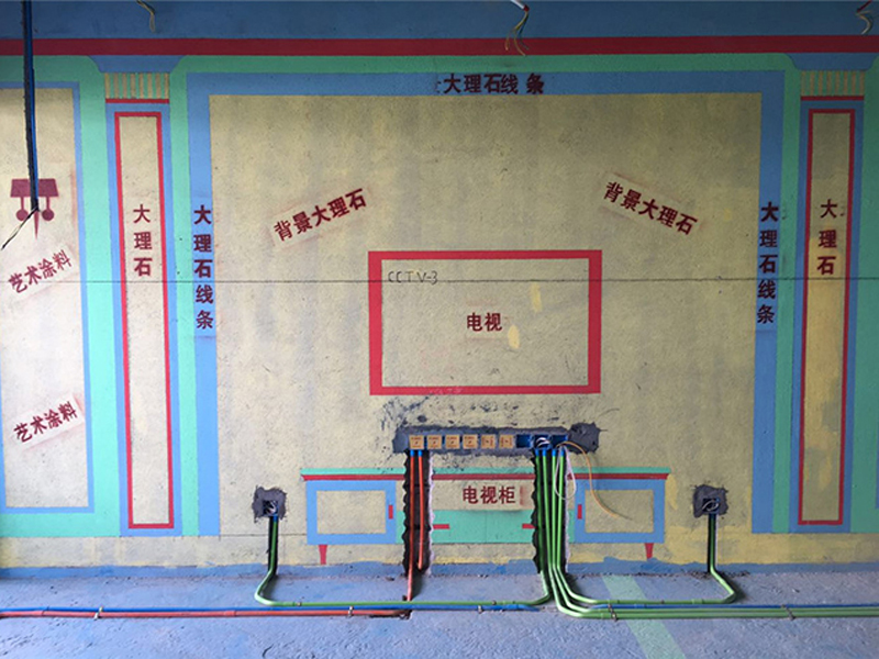 水電工首先會根據用戶的需要定出全屋開關插座的位置和水路接口的位置。並且還要注意水管走天棚,強、弱電盡量走地面,而且強、弱電之間也是不能夠不能交叉、平行距離大于30厘米。