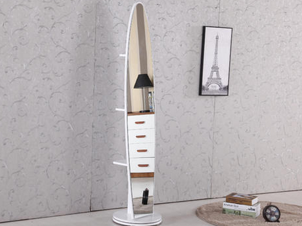 (2)穿衣鏡。穿衣鏡一定是必不可少的!不管是男士還是女士,每天早上搭配衣服,穿衣鏡可是必不可少。臥室里的穿衣鏡最常見的有長方形和橢圓形,但有的穿衣鏡是直接鑲嵌在衣櫃里面的,這樣既節省了空間還不用擔心擺放的問題。