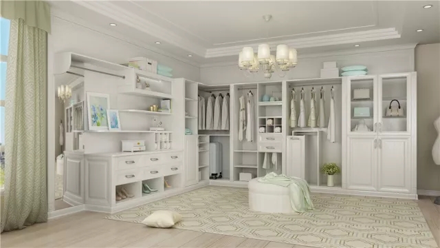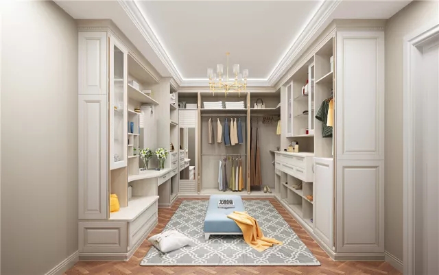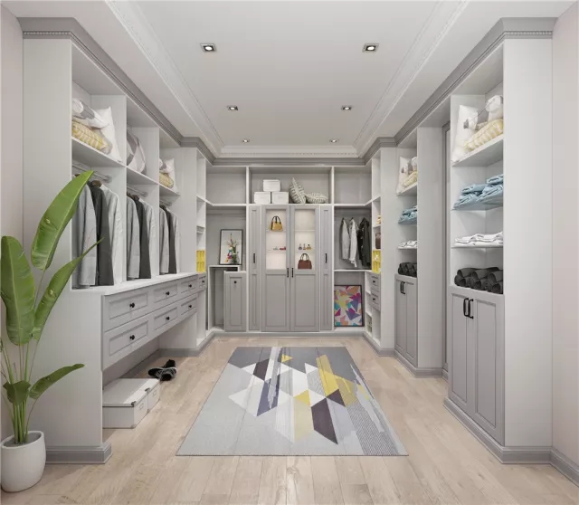 不同衣帽間的造型布局,適合不同的戶型空間。根據造型分,衣帽間分為雙一字型衣帽間、L型衣帽間、U型衣帽間。