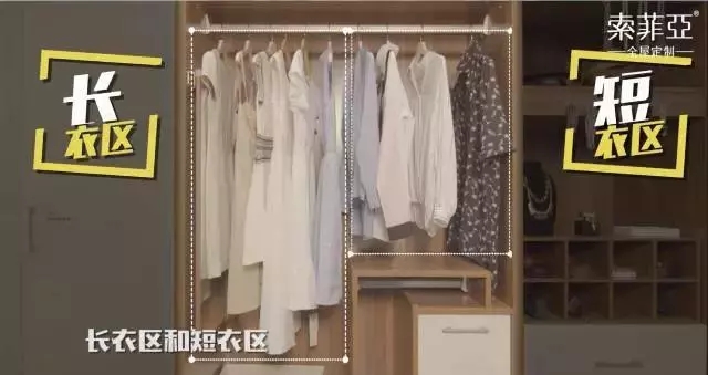 通常衣帽間內部可分為長短掛衣區、疊衣區和配件區。在設計自家衣帽間內部結構時,先考慮家庭成員的需求再分配功能區的大小占比。