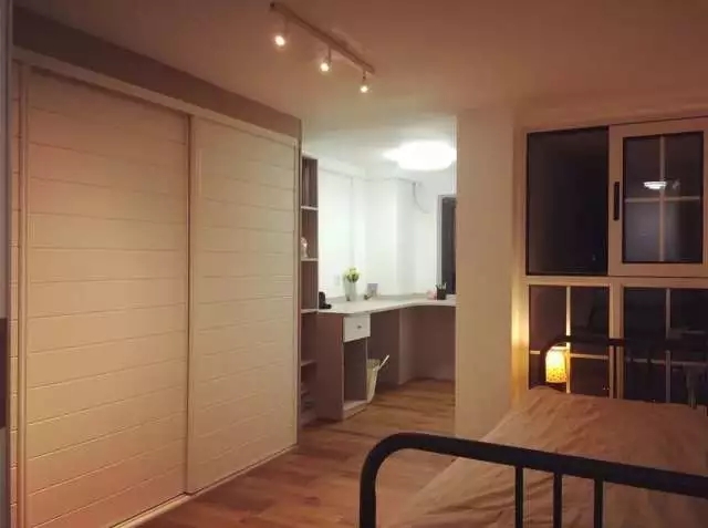 @yiwa則利用臥室一側的空間,將衣櫃、梳妝臺一體化設計。