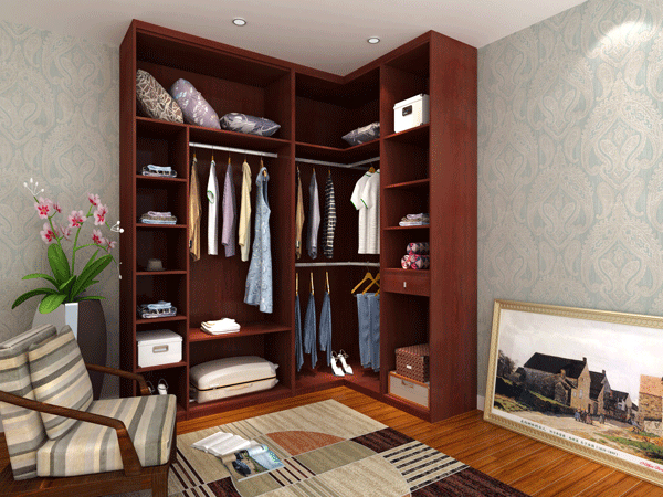 因為它簡簡單單,沒有太多花哨的成分,所以相對其他特別高大上的衣帽間來說,這款衣帽間的價格也相對比較便宜;它充分利用轉角,節約了空間。現在很多的居室,都算不上特別的大,那么這款爆款衣帽間就大有用武之地了。L型的設計,很好地貼合了轉角的空間,為主人節省下了不少的空間;因為它有各種規格的櫃子,收納功能強大,所以基本的收納要求對它來說不是問題。