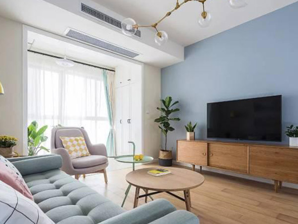 比如茶幾是藍色,那么電視櫃就可以選擇藍色、深藍色和天藍色。