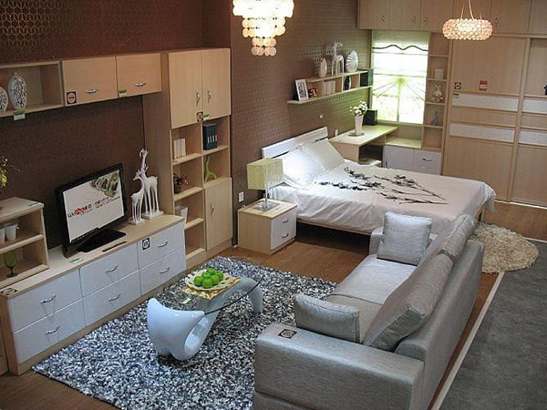 (6) 家具在室內的占地面積一般的不超過45%為宜,要留一部分地方放置今后添置的小孩床、衣帽架等生活用具。