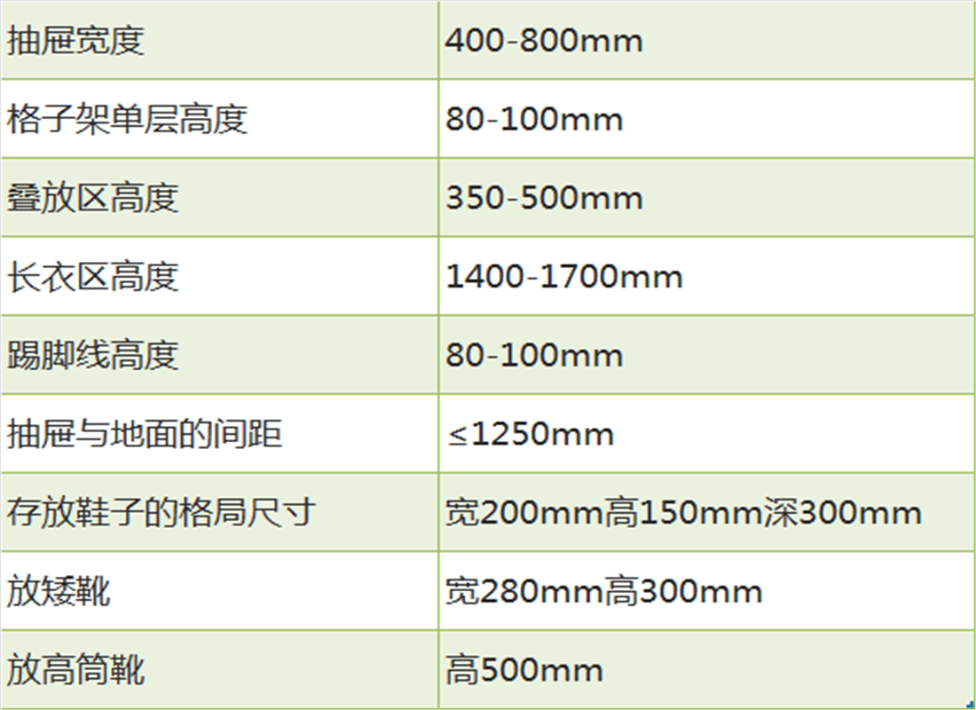 首先,衣帽間的櫃子深度一般為600mm,主要包括了570mm櫃體和+30mm的櫃門深度,太深沒必要,可以根據實際情況減少到400-500mm。另外,櫃子高度在1800-2000mm以下拿取物品是不需要借助矮凳的,這個高度也是常用物品和不常用物品的分界線。最后,衣帽間中的站立通道寬度至少要過600mm以上,考慮到轉身、高低處取物等情況,這些區域也要900mm以上,更衣空間寬度要1000mm以上,而照鏡的話要1200mm以上。