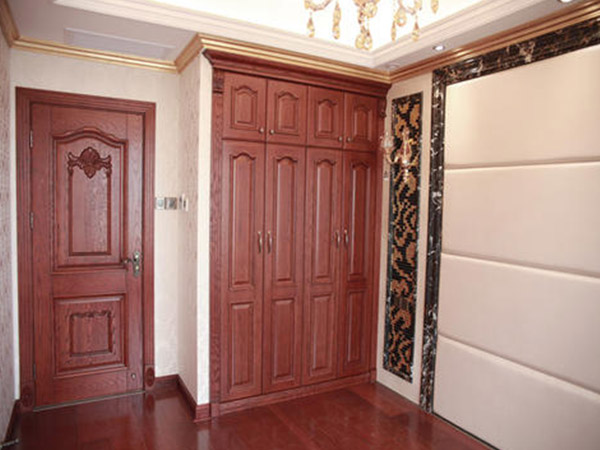 在各類材質的衣櫃門中,實木衣櫃門使用的比較多,價錢也會貴一些。這種材質的衣櫃門有許多優點,實木衣櫃門有較好的裝飾性,可以提升衣櫃的檔次。木衣櫃門其門框為實木,以櫻桃木色、胡桃木色、橡木色為主;門芯為中密度板貼實木皮,制作中一般在實木表面做凹凸造型,外噴漆,從而保持了原木色且造型優美。這樣可以保證實木的獨有視覺效果,邊框與芯板的組合又可以保證門板強度。