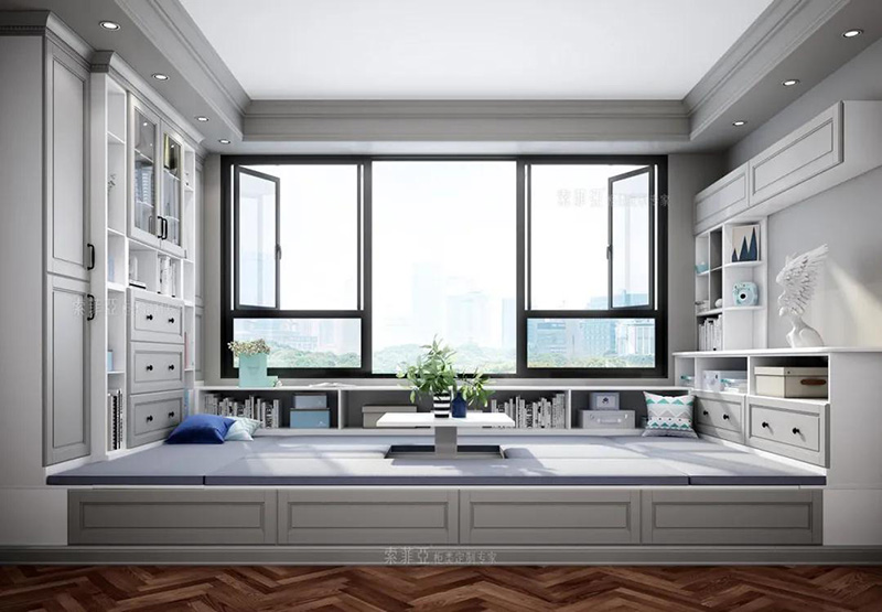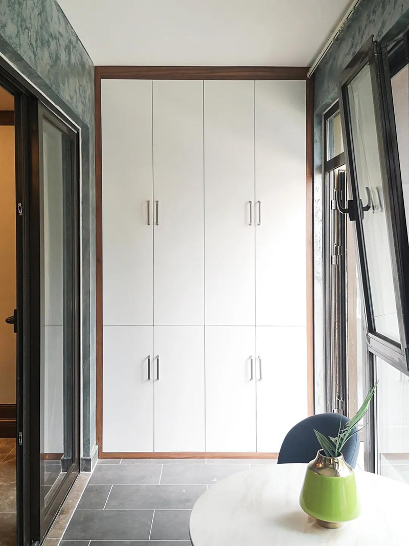 而且內陽臺搭配上遮光簾,也就不用擔心大面積的櫃體會因風吹日曬而損害其使用壽命了。