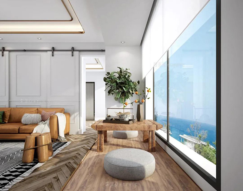 也可以設置一張上翻折疊移動桌,一物兩用的神器。平時存儲物品,親朋好友到來時,輕輕推開就是一張可供聚會聊天的桌子,十足愜意。