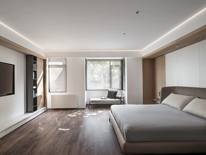 以床為中心,是臥室家具擺放的一個最重要也是最基本的原則。因此,我們在裝潢臥室時,首先要確定床的大小、款式、位置、朝向,其他的家具就圍繞床這一臥室的主角展開。