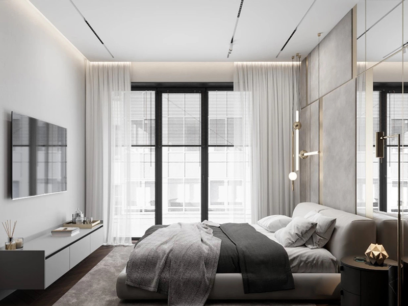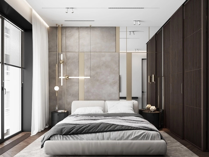 米白色與白色非常相近,但比白色更柔和。將臥室裝潢成米白色,可以避免墻面的單調感,還能讓整個空間顯得更整潔明亮,有助于營造溫馨舒適的居住氛圍。