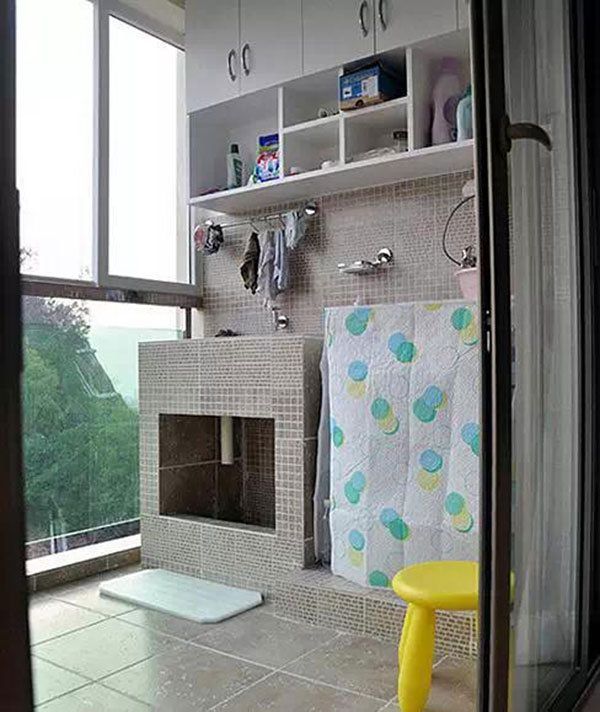 5.讓裝潢師傅隨意做了洗衣池,旁邊擺放著洗衣機,沒有特別裝飾與設計,陽臺作為清洗衣服的地方,展示著最原始的姿態。