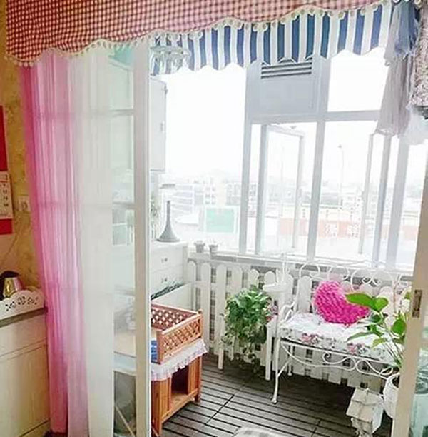 9.在鋼筋混泥土的高樓大廈里,許多人把自家陽臺改成充滿生機的田園景象,有花有草有鐵藝沙發,有蕾絲窗簾,工作勞累了來這里休息一下!