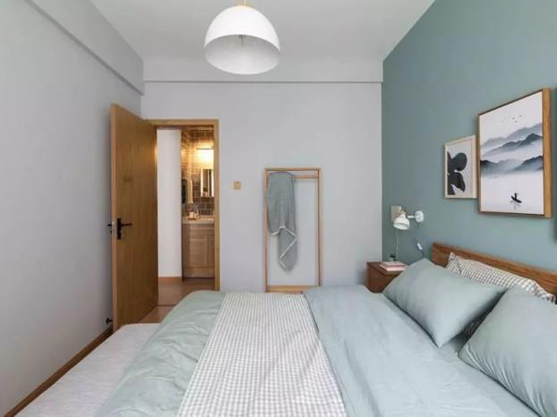 因此我們在臥室房間裝潢中,墻面是用藍色的乳膠漆色調,能夠更好的營造睡眠環境,讓家人得到良好的睡眠。