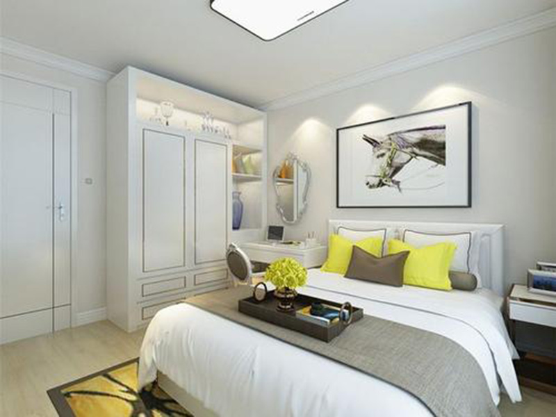3、小臥室在裝潢的時候可以選擇淺色的顏色,淺色可以使室內看起來更明亮,室內風格方面要偏向于簡約,盡量不用繁復的裝飾,我們可以將鏡子作為裝飾品,因為鏡子具有擴大空間的作用。