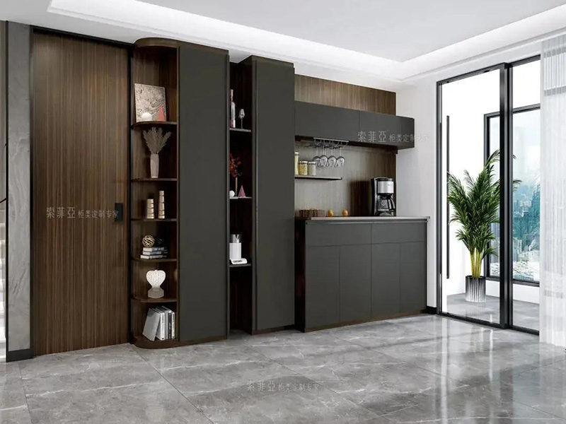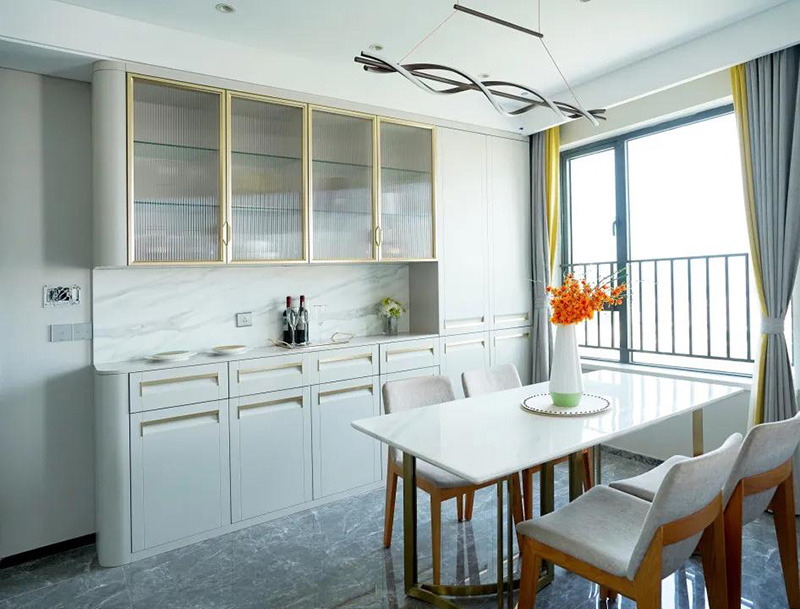 根據擺放的位置不同,餐邊櫃還會和其它櫃體結合,實現更多功能。