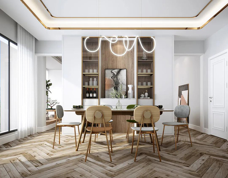 沿著墻面動線,餐邊櫃+電視櫃一體設計,形成完美的收納動線。