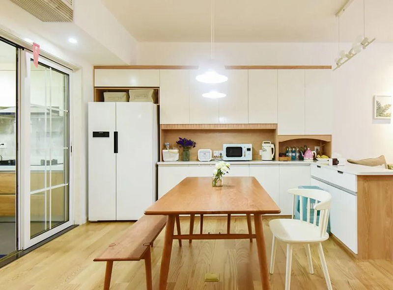 和廚房門洞結合,節省空間,打造餐邊櫃收納墻。