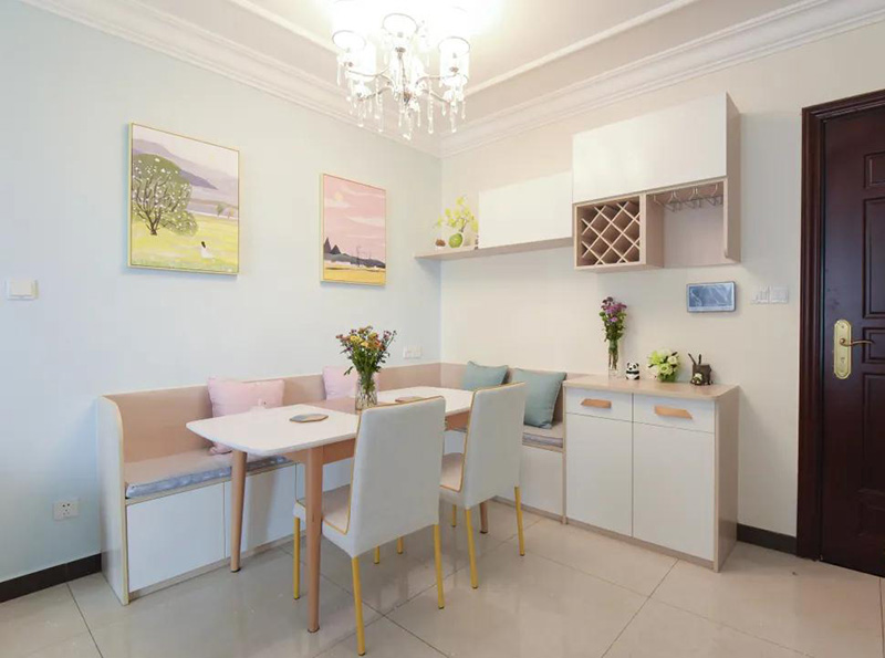 餐邊櫃增加卡座設計,不僅能容納更多座位,還能增加儲物空間;