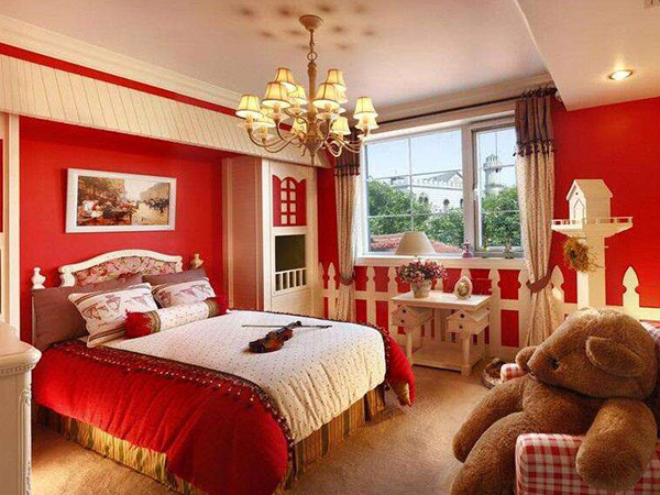 Tips:如果擔心大面積的紅色會使房間過于單一,在選擇床品時可考慮搭配淡色系列,但顏色一定不能與紅色相抵觸。