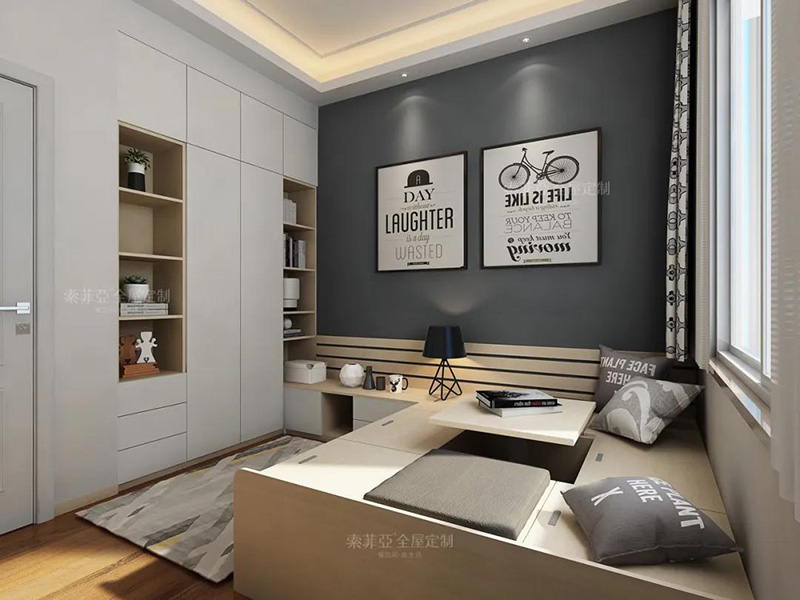 比單做一個懸空櫃更實用,很適合小臥室的設計。