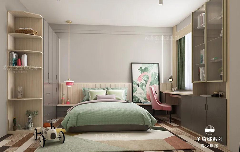 添加層板設計,睡前讀物和孩子的小玩具也能隨手安放。