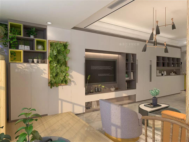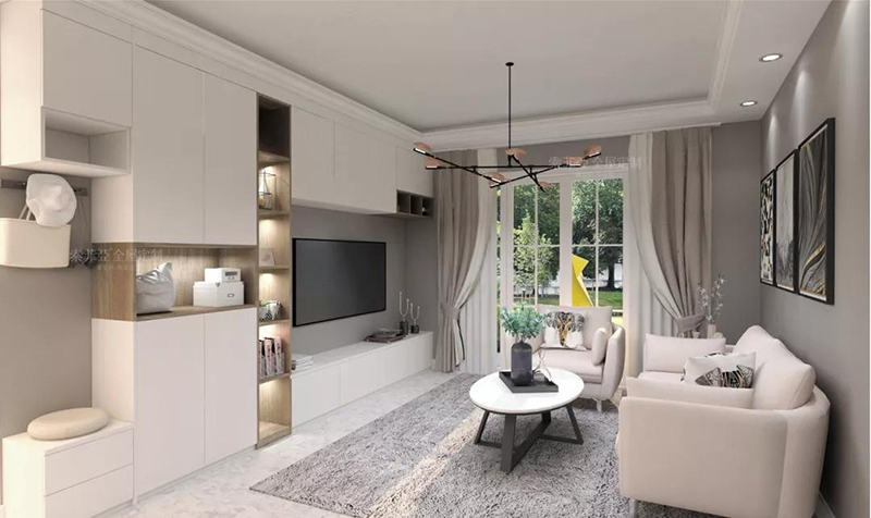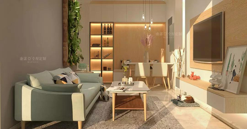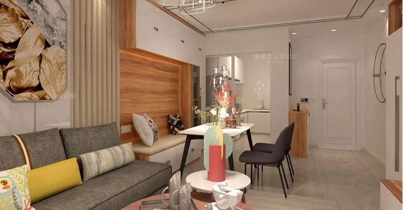 將電視櫃與餐邊櫃結合起來,做成一字形櫃體,視覺上既統一和諧,又充分利用空間,表姐推薦小戶型可以嘗試這種做法。