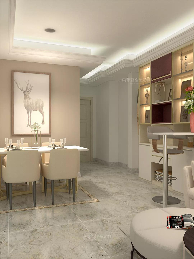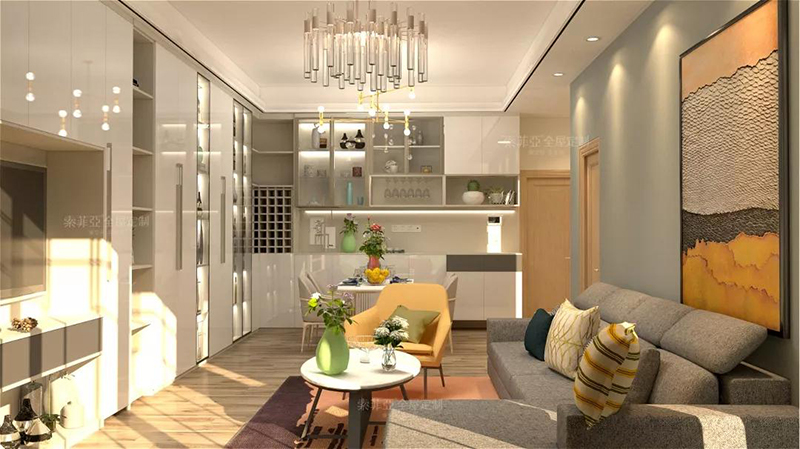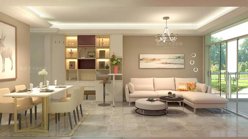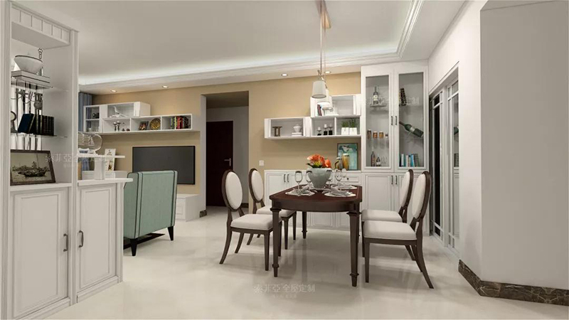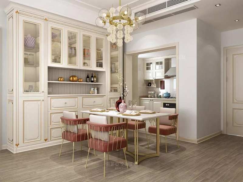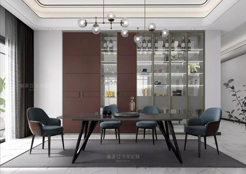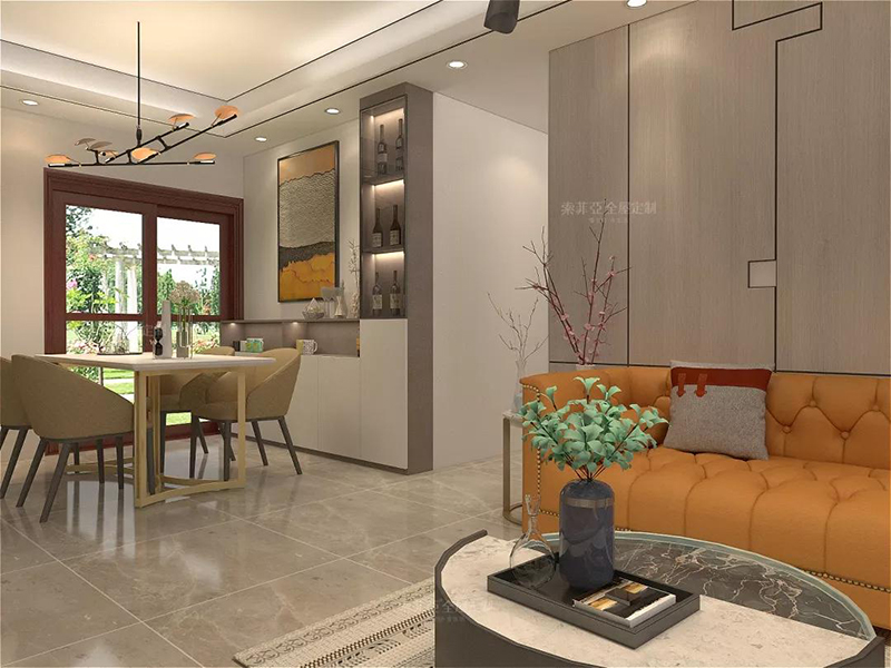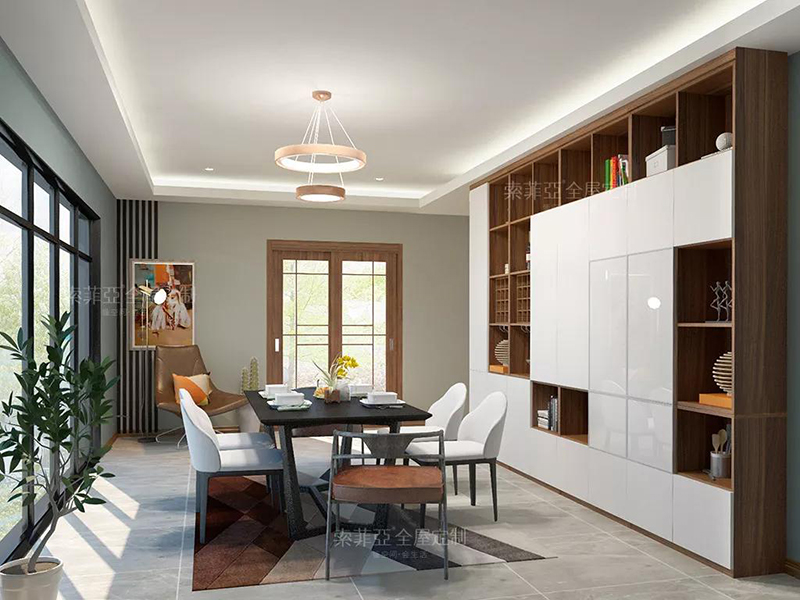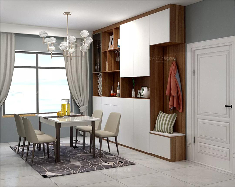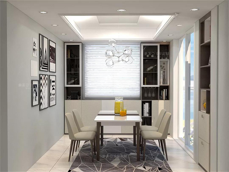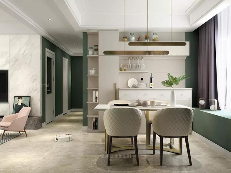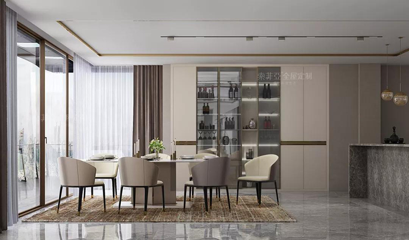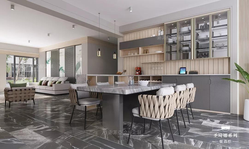 餐邊櫃除了收納之外,還能當隔斷使用,尤其是在客餐廳一體中,餐邊櫃可以巧妙地隔開客廳與餐廳,顏值高的餐邊櫃還能作為裝飾,讓餐廳的用餐氛圍更加優雅愜意。